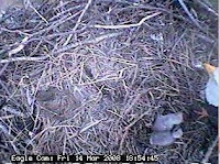 Hello!Caught these this afternoon(Fri 1/14) while the Blackwater eaglets were getting a snack from Mom/Dad! I left the entire nest in the picture to compare the size of the young'uns to the nest size. If we check about 10-11 weeks from today, you'll see how big they grow in that time! Right now, CUTE is the key word here! LOL